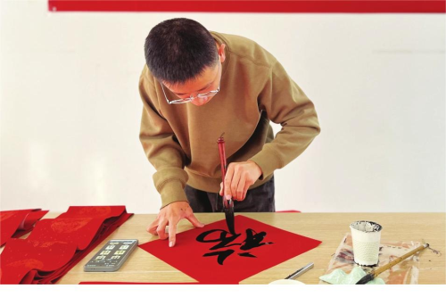 左手筆走龍蛇 為居民寫春聯(lián)