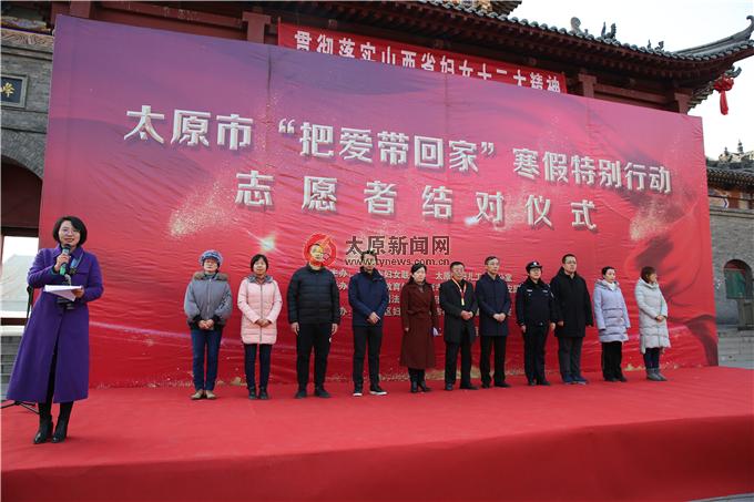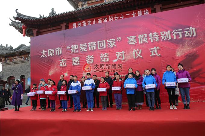 太原市啟動“把愛帶回家”雙百萬結對寒假特別行動以來,有8000余名志愿者與6648名留守、困境兒童結對幫扶服務過年,參與志愿服務的有婦聯干部、執(zhí)委、家庭教育工作者、企業(yè)家代表、大學生團體、法治宣講員、教師等,他們通過開展“十個一”活動,真正把優(yōu)良家風帶回家、把法治安全帶回家、把社會關愛帶回家。
