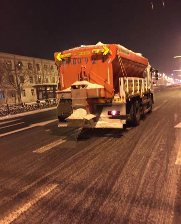 截止到下午6:30,共出動車輛28輛,作業280趟次,撒布融雪顆粒600噸,出動作業人員3006人次。