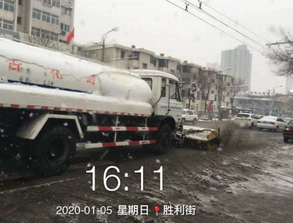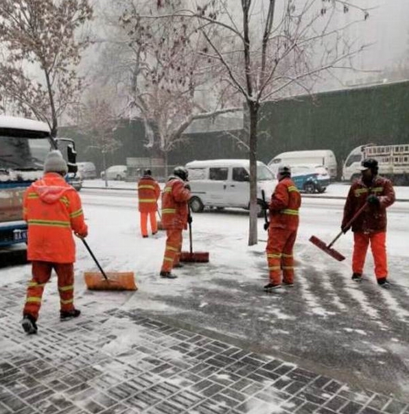 為保障車輛和市民通行,從早晨開始,環衛工人全部上崗以組為單位手持鐵鍬、掃帚等清雪工具,仔細清掃路面積雪,全力保障市民出行安全。