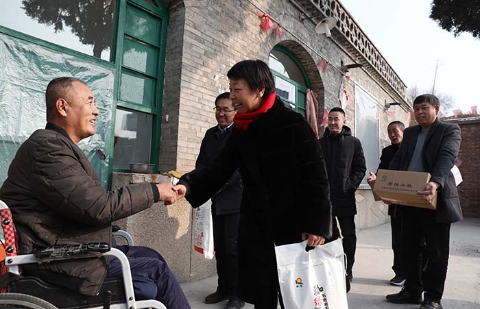 景莊村還有個別貧困戶由于身體殘疾,不能到現場領取面粉,大盂鎮黨委領導、村委會領導和趙玉娥董事長一起走村串戶,把面送到他們家中并詢問他們的身體狀況、家庭困難情況等,為他們送上節日的祝福。