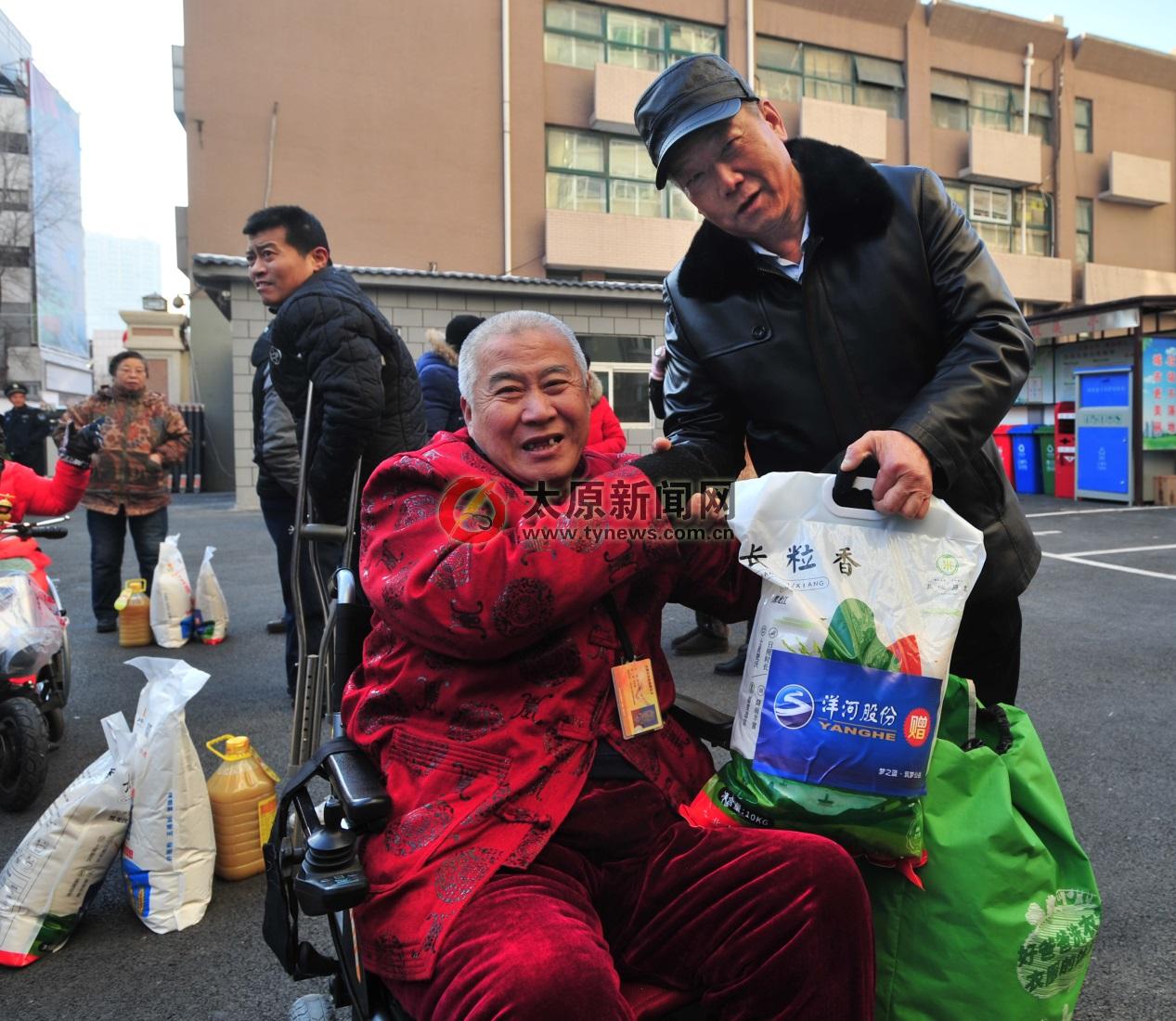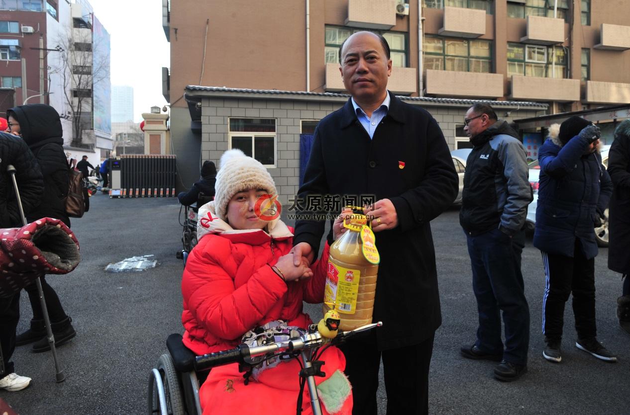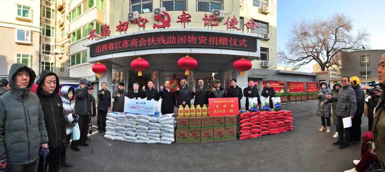 入冬以來,這是太原市最寒冷的一天,但是山西省江蘇商會給殘疾朋友帶來的愛心卻是暖暖的。山西省江蘇商會向省殘疾人福利基金會捐贈現金5萬元,山西省江蘇商會會員單位蘇酒集團太原市辦事處向迎澤區的殘疾朋友送來了新春扶殘助困慰問物資米、面、油各50袋(桶)。