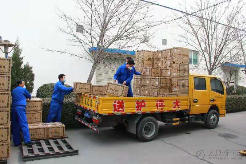 為了能及時將藥品送到疫情防控一線,大寧堂董事長助理馬婕、總裁助理總監馬越飛,面對運輸難題四處奔波,就發貨事宜與各方協調溝通,力爭捐贈藥品盡快發往防控一線。記者在大寧堂藥業廠區發貨現場正巧碰到了山西省紅十字會戴微主任與山西省大件運輸協會耿瑋會長。據介紹,省紅十字會昨日開會協調到晚上23點多,最后協調省大件運輸協會安排調動2輛貨車定于今日下午17點開始裝貨,今日19點三百件76800盒,價值9216000元麝香牛黃丸,裝車完畢連夜開往武漢送達湖北紅十字會。