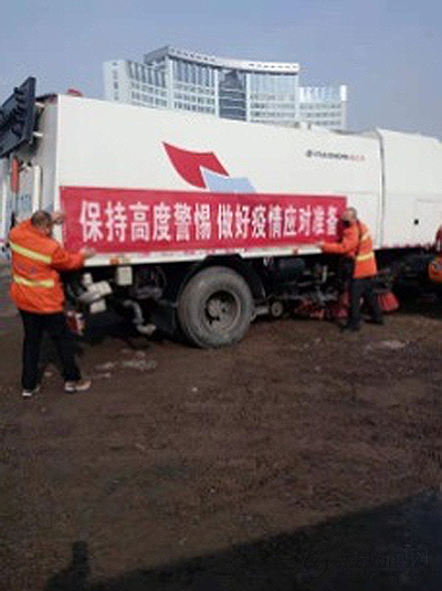 機掃隊積極發揮自身優勢,在機掃車輛車身懸掛“強化自我保護,避免疫情傳播”“保持高度警惕,做好疫情應對準備”“筑牢銅墻鐵壁,全力做好疫情防控”等宣傳條幅,在作業的同時進行流動宣傳,在轄區主次干道、大街小巷、過往市民心中形成“生命重于泰山,疫情就是命令,防控就是責任”的疫情防控氛圍,與社會各屆齊心協力打贏疫情防控戰役。