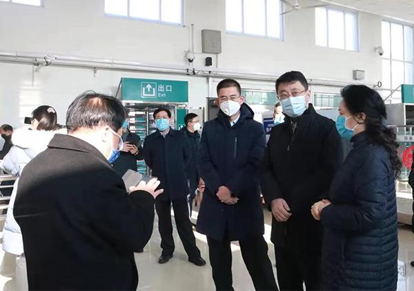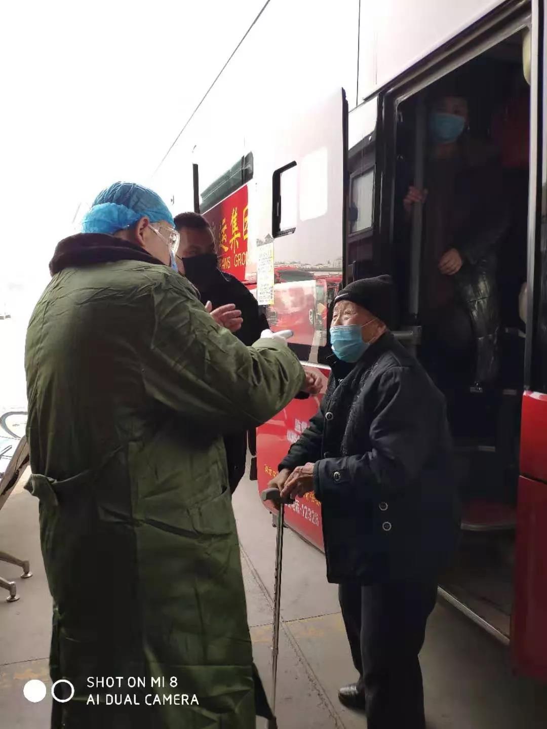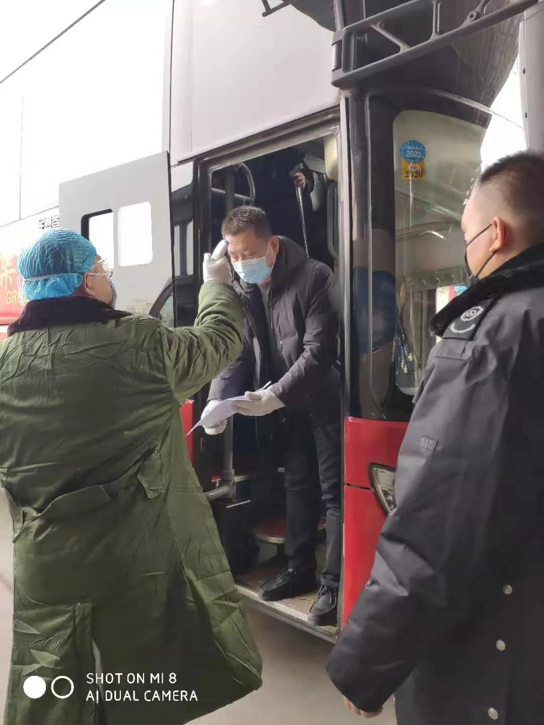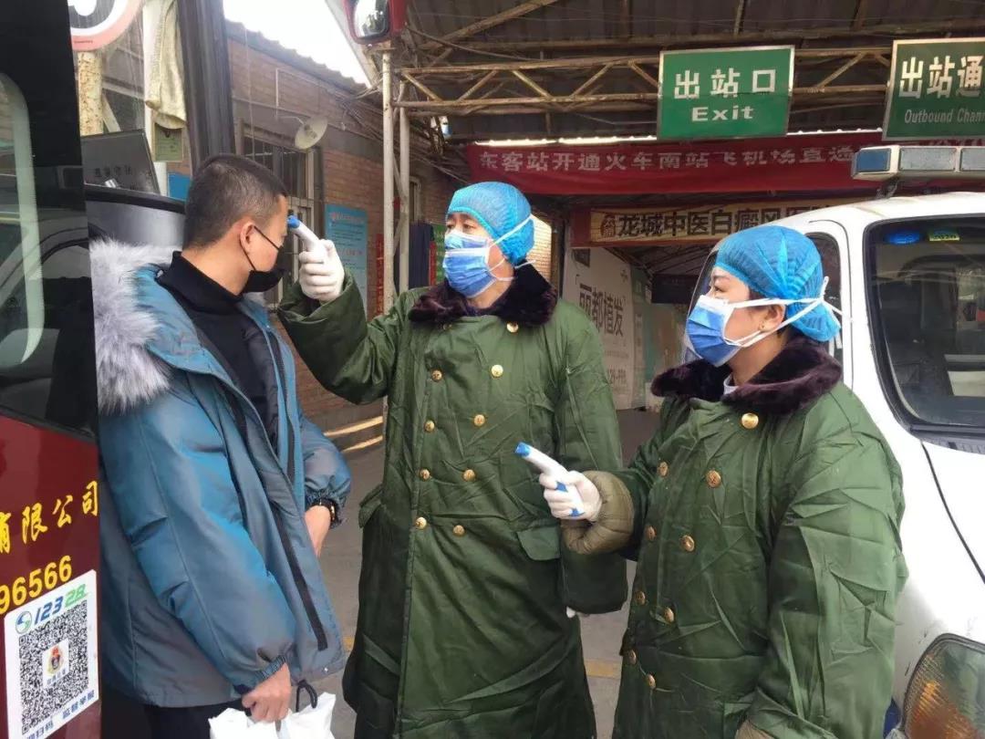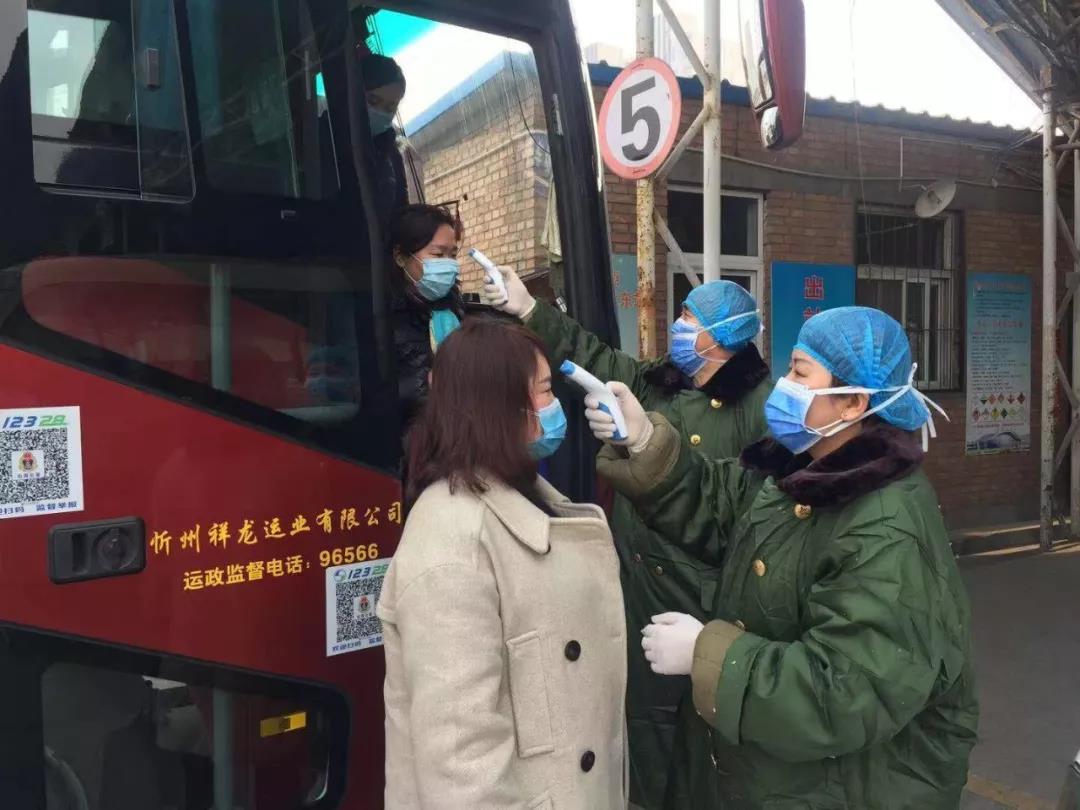 太原市人民醫院醫護人員在太原客運東站挨個為旅客進行體溫檢測。