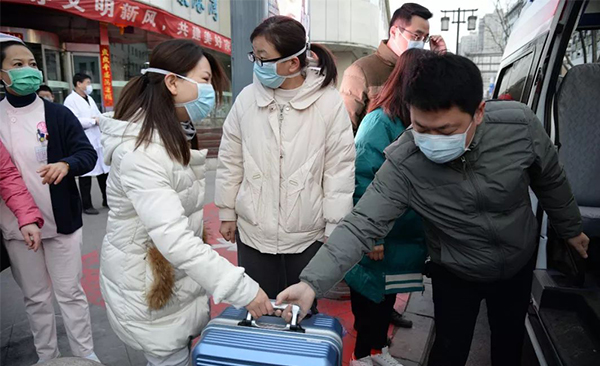出征儀式上,院長康文娟表示,在新的工作環境中,9名醫護人員將繼續發揚團結奮進、迎難而上的好傳統、好作風,統一行動,服從指揮,盡職盡責,配合完成好安排的各項工作,取得抗擊病魔的最后勝利。黨委書記孫震宇強調,要堅定戰勝疫情的信心和決心,做到不負重托、不辱使命,切實加強安全防護,相信大家一定能出色地完成抗擊疫情支援任務,帶著榮譽和驕傲凱旋。