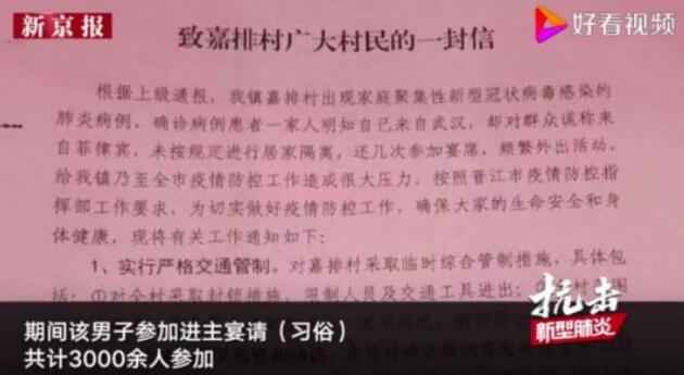 福建晉江,男子張某某隱瞞武漢旅居史,私自外出和走親訪友、參與聚會,引發一起家族聚集性病例。