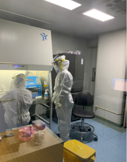 院感科的田芳英主任,專程趕來傳授實驗室的安全知識。兩位后勤處的師傅,檢查了空調(diào)排風(fēng)系統(tǒng),以防通風(fēng)不好,造成病毒蔓延,形成醫(yī)源性感染。15:00點整,《新型冠狀病毒檢測標(biāo)準(zhǔn)操作規(guī)程》制定完畢。17:00,防護服、護目鏡、醫(yī)用外科口罩、N95醫(yī)用防護口罩、隔離衣全部到位。18:00點整,檢測生物安全柜,以保證生命安全。