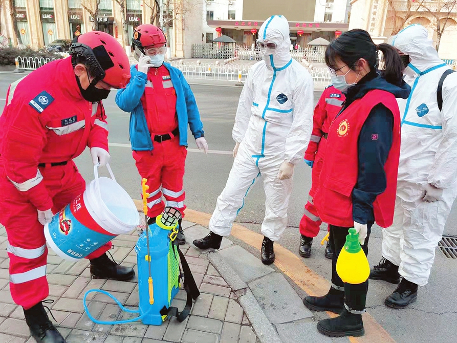 在老軍營二社區(qū),奮戰(zhàn)一線的社區(qū)工作人員組成抗擊疫情應急小分隊,責任在肩、走街串巷展開排查和宣傳。米國偉 攝