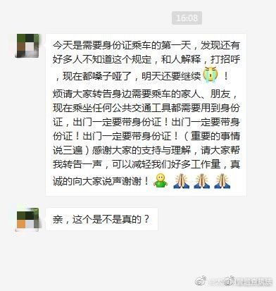 近日,太原很多市民看到一則有關乘坐公共交通工具的微信朋友圈信息,稱市民乘坐公交需持身份證。這則消息稱“今天是需要身份證乘車的第一天,發現還有好多人不知道這個規定…… ”。經核實,此消息為謠言。截止2月9日,太原目前沒有要求乘坐公共交通必須出示身份證,但市民乘坐公交需佩戴口罩。