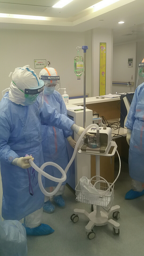 “2月4日下午2:30開始收治病人,到凌晨1:00下班為止,50余張床位已經全部收滿。這個病區基本都是重癥患者,大多要佩戴無創呼吸機和高流量吸氧儀。今天收治了一名重癥患者,血氧分壓低到了30毫米汞柱,當即被轉入重癥監護病房,緊急進行了氣管插管。”在高曉玲的敘述中,記者仿佛看到了病房內緊張的救治場景,我們都知道氣管插管是感染風險極高的操作,這些醫護人員天天行走在危險的邊緣。