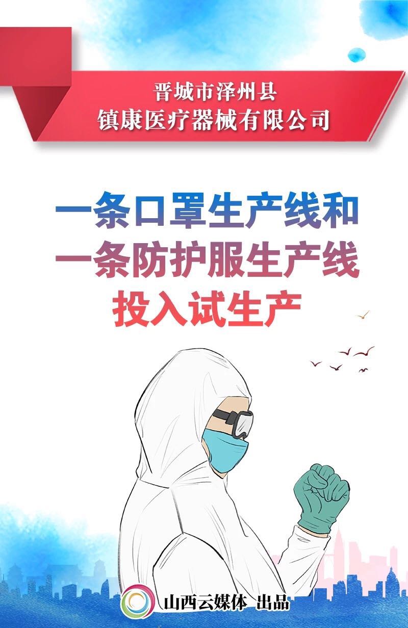 澤州縣組織鎮康公司籌集資金、購買設備,恢復生產。目前已采購回近一噸的防護服原材料和10臺生產設備,一條口罩生產線和一條防護服生產線投入試生產。