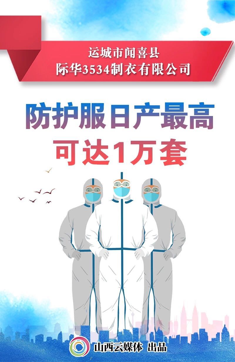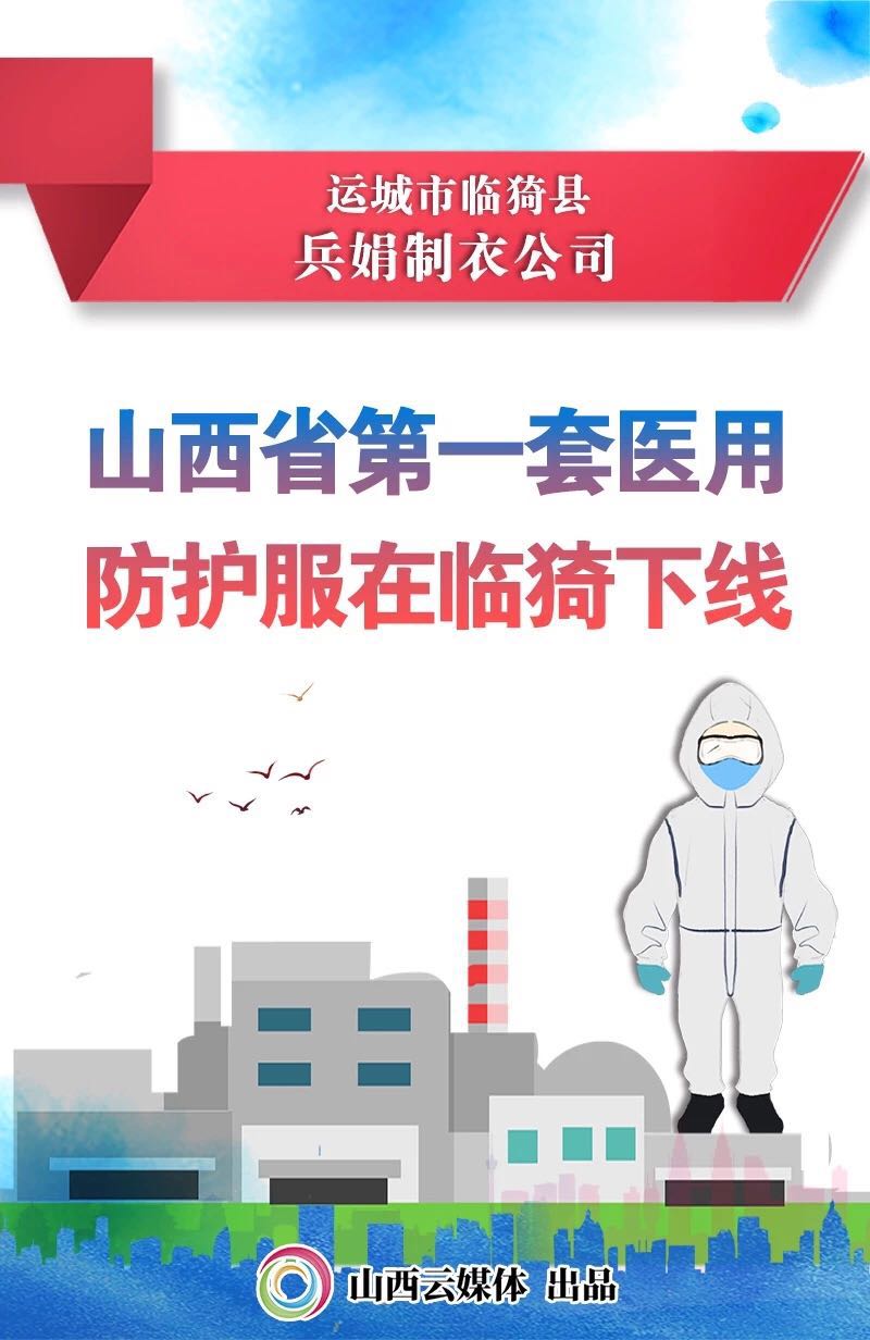 臨猗縣在兵娟制衣公司復產醫用防護服生產線,2月3日,全省第一套醫用防護服在該公司正式下線。現生產線已開足馬力、加緊生產,盡最大努力完成生產任務,保障醫護人員安全。
