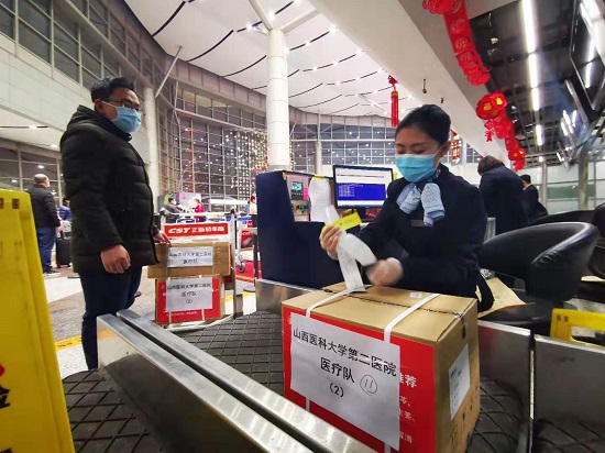 2月11日上午,我省抽調山西白求恩醫院、山西省人民醫院、山西醫科大學第一醫院、山西醫科大學第二醫院、省腫瘤醫院、省兒童醫院、省第二人民醫院共12名呼吸科、重癥醫學科醫務人員組成第五批支援湖北醫療隊(重癥患者救治醫療隊)奔赴武漢華中科技大學同濟醫學院附屬同濟醫院中法新城院區重癥組。