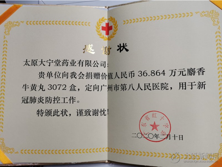 2020年1月31日,大年初五,得知麝香牛黃丸同蘇合香丸、安宮牛黃丸一起被列入山西省衛健委《山西省新型冠狀病毒感染的肺炎中醫藥防治方案(試行)》防治推薦用藥。政府的肯定,專家的認可,老號大寧堂非常興奮,迅速加快了全國“戰疫情捐獻活動”的進度。