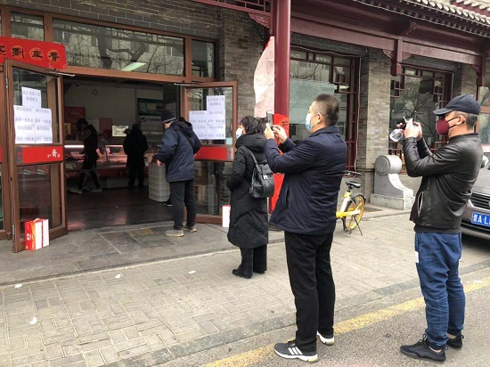 日前,記者在一家六味齋門店前看到,不少市民在排隊采購食品,他們都能夠戴上口罩,自覺排成一隊,并與前人保持一米以上的安全距離。同時記者還注意到,六味齋也在門口醒目位置貼出溫馨提示的紙條,提醒廣大市民為了健康,保持安全距離。市民表示,對這樣的購物方式很贊同,既能保護自己也是對他人的保護。但是即便如此,還是要提醒廣大市民,盡量減少外出采購的次數(shù),建議大家盡量避開購物高峰,若發(fā)現(xiàn)菜場人多,可換個時間再去,避免人群過多聚集。采購回家后要做好消毒工作。在外出采購回家之前,要先把口罩摘掉,并外折,扎緊之后放進垃圾桶;然后,要用流動水沖洗手部進行消毒,如有必要,外出所穿的外套、鞋子以及購物袋表面等都要進行消毒,最好是使用75%的酒精噴灑表面進行消毒。