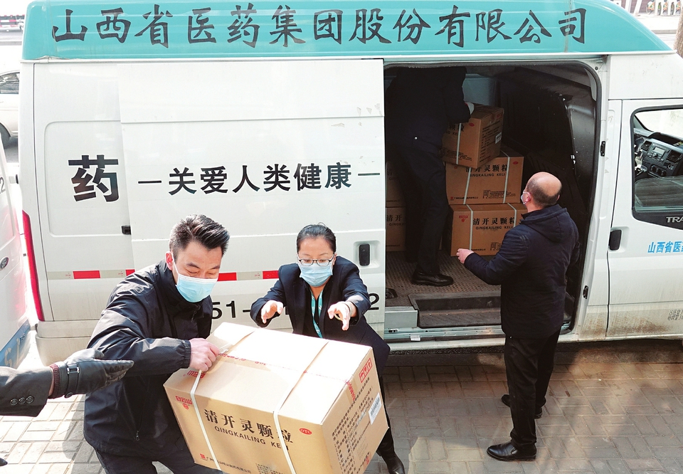 2月14日,山西省第七批支援湖北醫療隊隊員在太原武宿機場合影。新華社 發