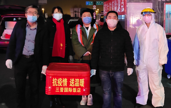 2月15日,太原市晉源區(qū)交通運(yùn)輸局工作人員將一面錦旗和一封感謝信送到太原市三晉國(guó)際飯店。信中說(shuō):“每晚12點(diǎn)不辭勞苦送上精心準(zhǔn)備的夜宵,讓身處防疫一線的兄第姐們?cè)诤涞亩估锉陡袦嘏孕母兄x貴單位的無(wú)私援助,為我們戰(zhàn)勝疫情增添了力量。”