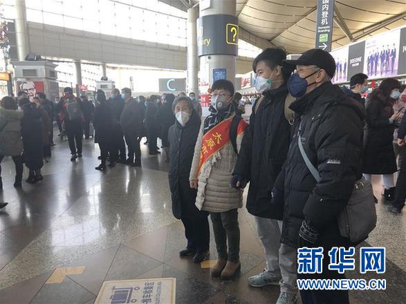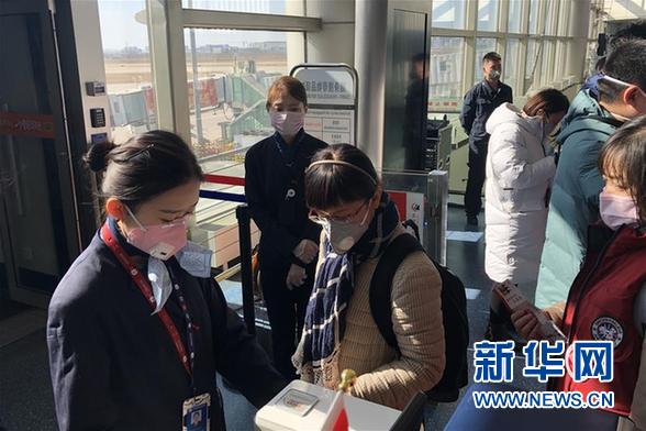 2月15日,在太原武宿機場,李雁梅的父母和兒子前來送行。新華社記者王皓攝