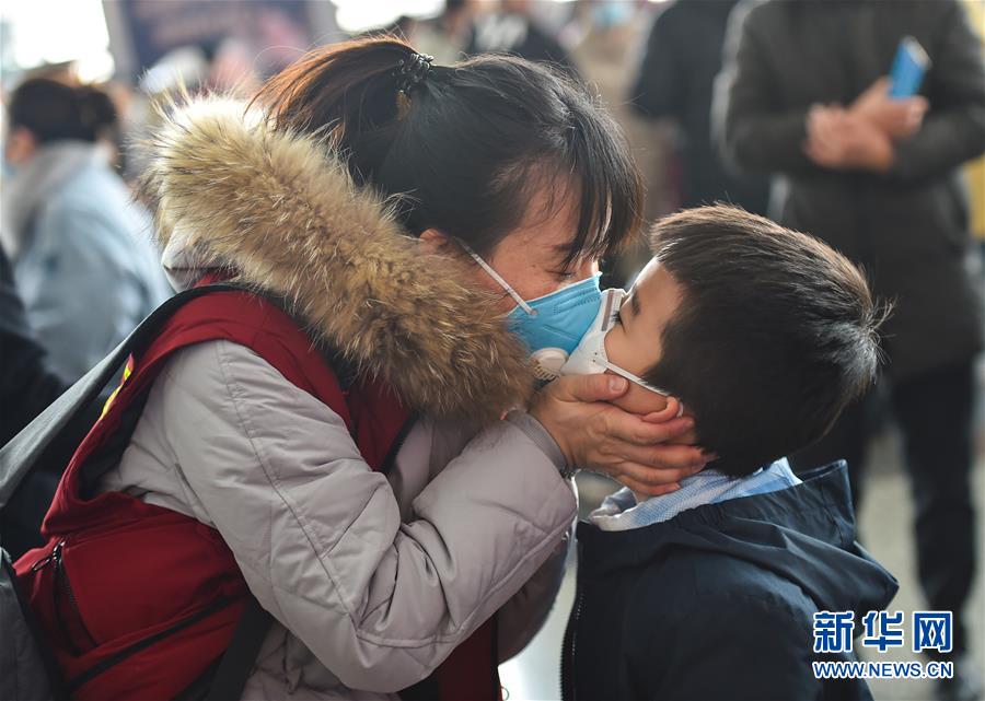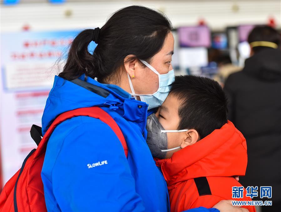 山西省第十二批支援湖北醫療隊隊員、山西醫科大學第一醫院神經內科護士孫艷艷與兒子告別