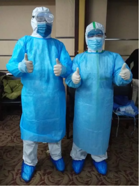經(jīng)過(guò)兩天的培訓(xùn),老師一個(gè)細(xì)節(jié)一個(gè)細(xì)節(jié)摳,穿脫二十余次,終于今天(2月18日)上午說(shuō)我通過(guò)了。但腳后跟、胳膊、腿、屁股現(xiàn)在都很疼。接著,我們又琢磨怎么往眼鏡和護(hù)目鏡上涂洗潔精,練習(xí)穿兩套防護(hù)服。終于知道為啥一男一女搭配了,兩個(gè)女士,傻傻分不清楚,能看出來(lái)哪個(gè)是我嗎?