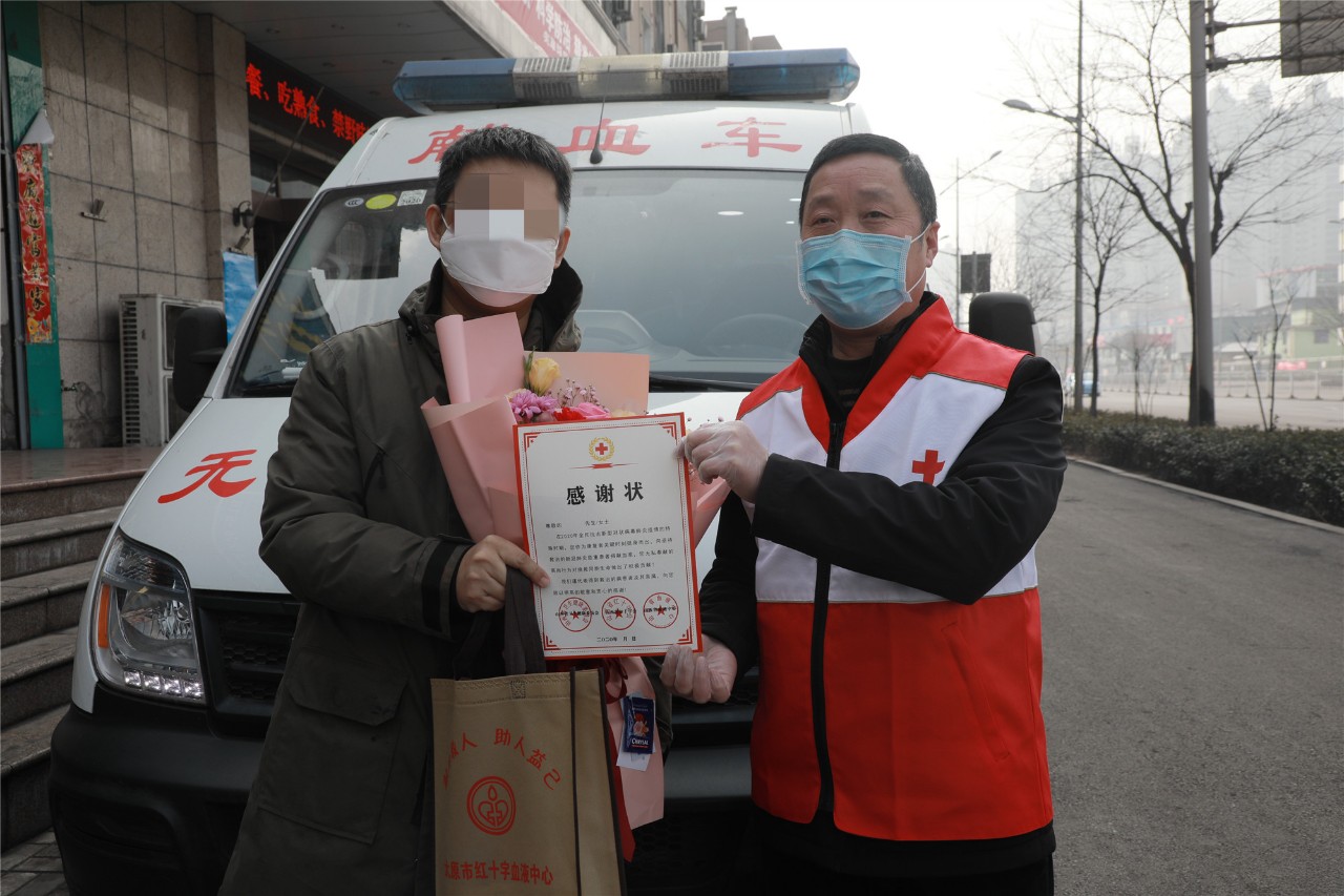 目前,山西省共有11例新冠肺炎康復者順利捐獻血漿,捐獻總量達4700毫升。2月26日上午,新冠肺炎康復者曹先生捐獻了自己的血漿,他是太原市第2例捐獻血漿的志愿者,太原市紅十字會送來鮮花及感謝狀表示慰問。