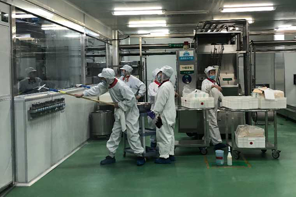 為做好疫情防控工作,九牛牧業(yè)針對(duì)鮮奶生產(chǎn)的每一個(gè)環(huán)節(jié),嚴(yán)格把關(guān)、科學(xué)應(yīng)對(duì),細(xì)化到每一個(gè)防疫關(guān)鍵點(diǎn)。公司在第一時(shí)間準(zhǔn)備了充裕的口罩、酒精、消毒液、背式消毒桶和紅外線測(cè)溫儀等疫情防控物資。同時(shí)要求生產(chǎn)車(chē)間大廳、更衣室和車(chē)間走廊每日噴灑消毒兩次,烘焙生產(chǎn)車(chē)間、乳品預(yù)處理車(chē)間、灌裝車(chē)間和乳品包裝車(chē)間每日至少進(jìn)行兩次噴灑消毒和熏蒸消毒。