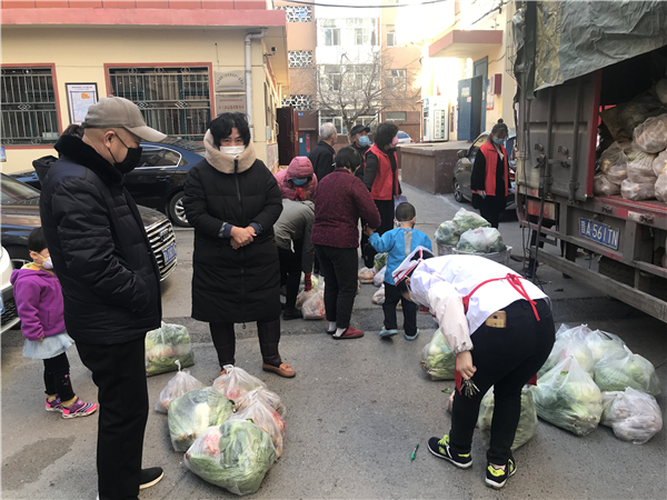 3月3日一早,滿載著新鮮蔬菜的卡車送貨上門,來到桃園南路第二社區(qū)所在的宿舍院內(nèi),將蔬菜分發(fā)到居民手中。