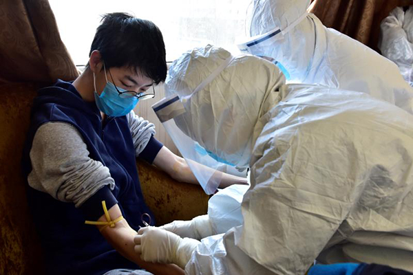 抽血和采集咽拭子是檢測和排查的重要環節。醫護人員將針頭插入小伙的靜脈血管,汩汩殷紅的鮮血流入采血管里。“你好,請脫下口罩,張大嘴巴。”兩位醫護人員開始采集小伙子的咽拭子標本。由于采集咽拭子標本易引起被采集對象的劇烈咳嗽,“沒事,別緊張,放松點。”醫護人員一邊安慰小伙子,一邊重新采樣,并最終取得成功。