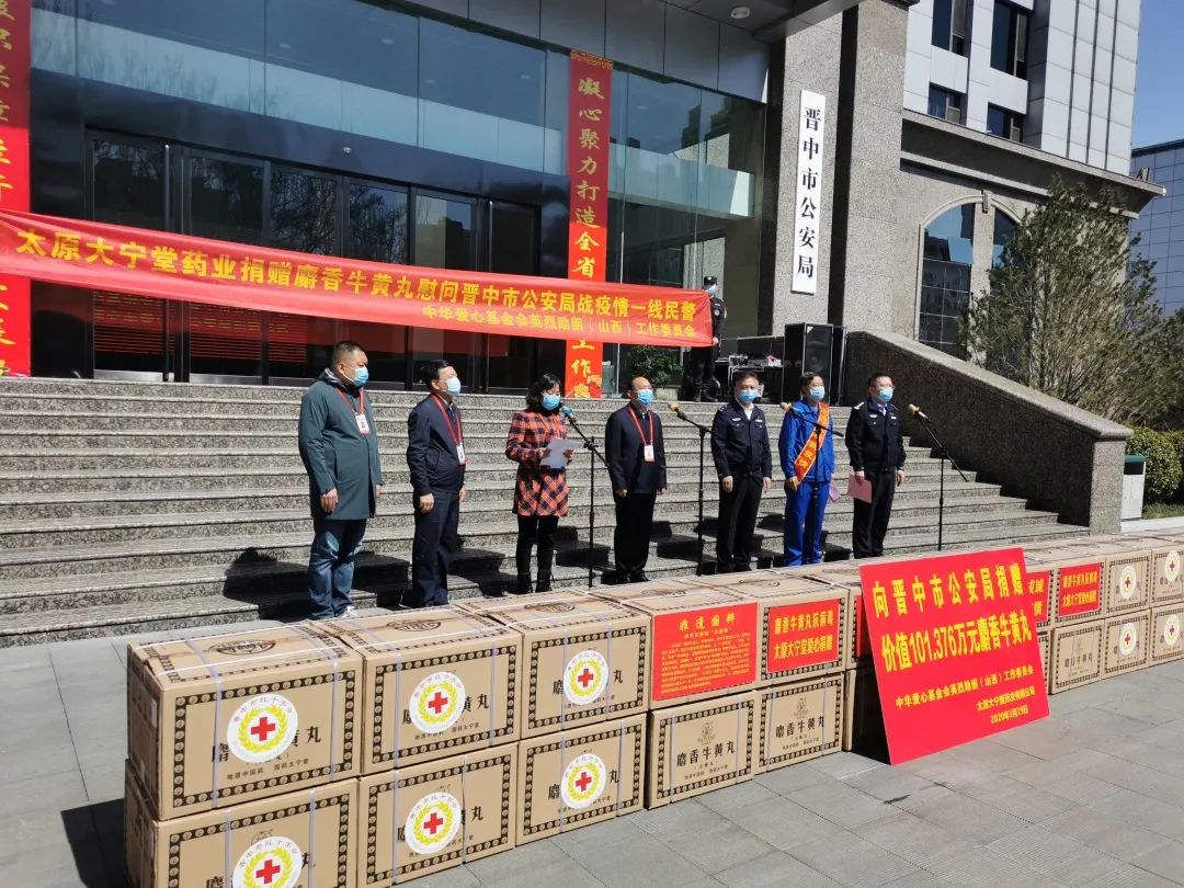新冠肺炎疫情發生以來,全市公安民警投身疫情防控最前沿時不畏辛勞,在關鍵崗位勇承重載,用行動和汗水向全市人民交上了一份合格答卷,為晉中取得疫情防控的階段性勝利作出積極貢獻,得到社會各界的廣泛認可。按照捐贈方意愿,市紅會將接收的共計16896盒麝香牛黃丸全部轉贈給市公安局,由市公安局分發至全市疫情防控一線民警手中,增強民警抵抗病毒的能力,保駕護航一線民警繼續參與疫情防控。本次捐贈也是市紅會主動服務,繼提供免費使用帳蓬和折疊床,調撥價值30余萬元物資后的又一暖心之舉,連同2019年底與市公安局聯合建立的“愛心互助金”救助項目,市紅十字會在衣、食、住、用、行、醫等方面全力支持我市在疫情期間堅守防控一線的公安民警。