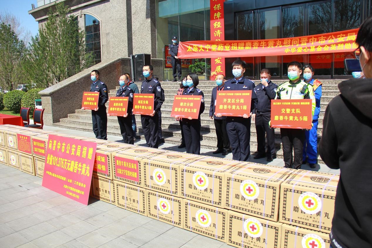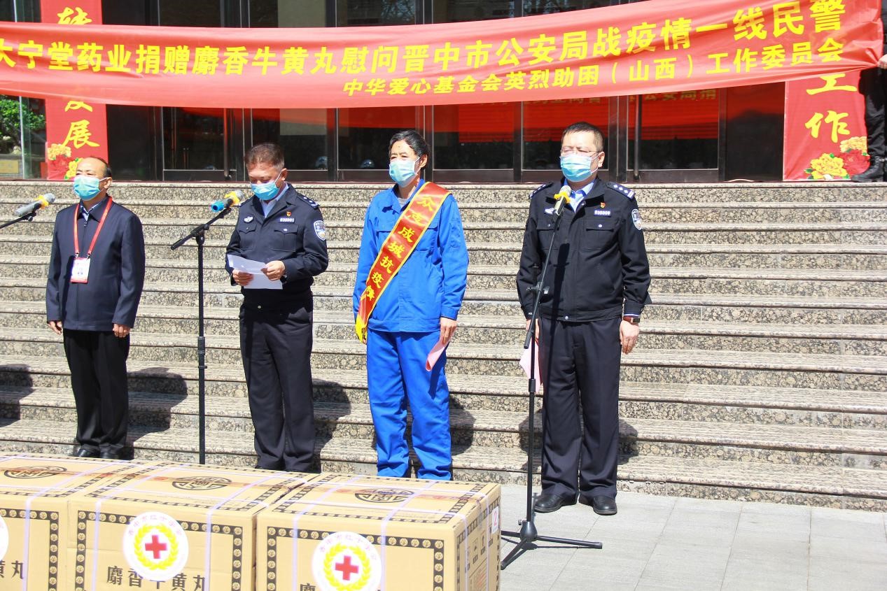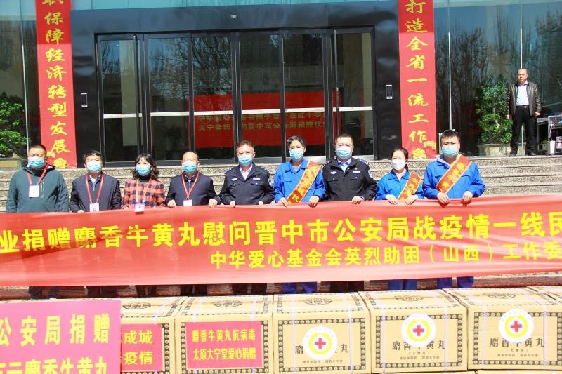 晉中市紅十字會專職副會長孟慶華指出,感謝中華愛心基金會(山西)工作委員會和太原大寧堂藥業有限公司的慷慨捐獻,為他們心系晉中、支援晉中的善舉點贊。本次捐贈的“小安宮”麝香牛黃丸,由有著630余年歷史的老字號“大寧堂”生產,具有祛火和預防病毒感染的作用,被稱為“中藥抗生素病毒靈”。新冠疫情發生以來,公安民警投身疫情防控最前沿,不畏辛勞,在關鍵崗位勇承重載,用行動和汗水向全市人民交上了一份合格答卷,為晉中取得疫情防控的階段性勝利作出積極貢獻,得到社會各界的廣泛認可。捐獻的麝香牛黃丸分發至防控一線民警,增強抵抗病毒的能力,保駕護航一線民警繼續防控疫情。