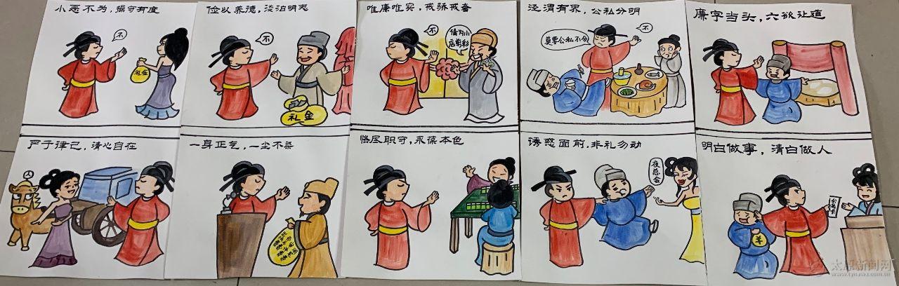 周潔還不忘弘揚廉政文化,營造氣正風清的廉政氛圍,繪制出一幅幅反腐倡廉的漫畫宣傳圖,簡單線條蘊含了引人深省的深意。