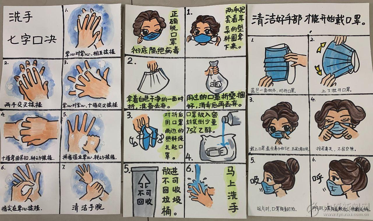 疫情初期,她曾因剛貼上不久的通知被人撕下來扔在地上而感到苦惱,于是想到換一種新的方式來宣傳和提醒社區居民——手繪宣傳圖。為了更有力宣傳防疫知識,她發揮自己的繪畫特長,利用閑余碎片時間,手繪了數十張疫情防控宣傳圖,一筆一劃中有她的思考,也飽含對工作、對群眾熱忱的心。由于圖文并茂、淺顯易懂,吸引了各年齡層的住戶駐足觀看。