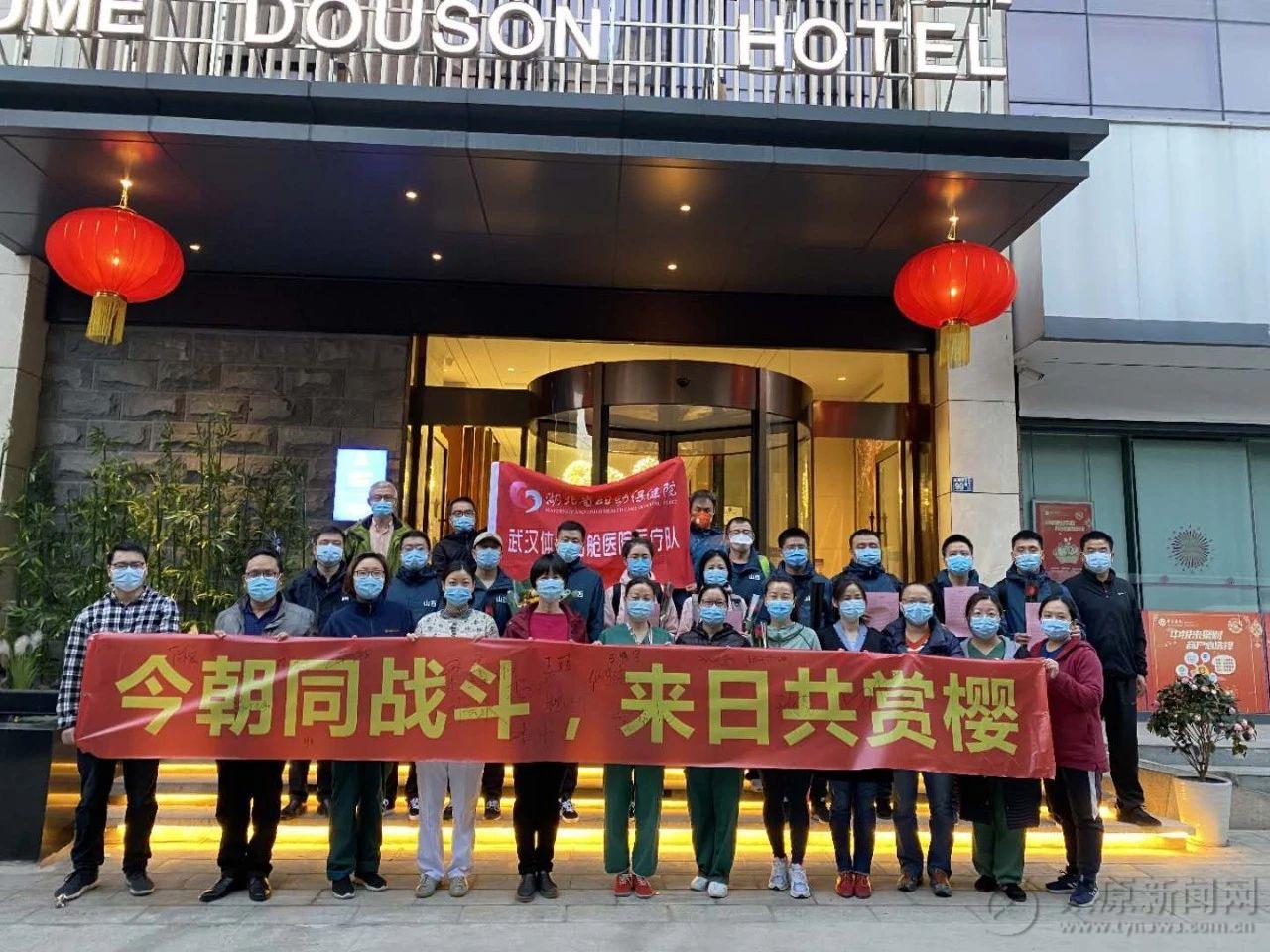 大家懷著既興奮又不舍得心情坐上去往機場的大巴車。沿途小區的武漢市民站在陽臺跟我們的大巴車不停地揮手,以表達感謝。機場門口兩邊站的志愿者一直在喊:感謝山西,中國加油。