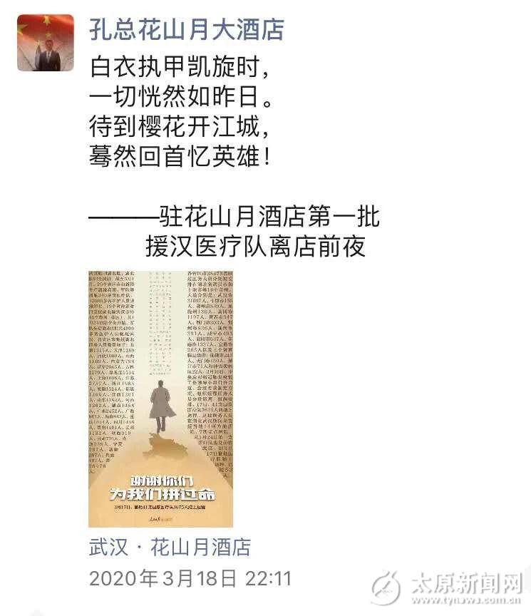 為了表達對駐地醫療隊敬意,酒店孔總特意為返程隊友賦詩一首。酒店工作人員也紛紛與隊友合影留念。隊友們在條幅上留下自己的簽名,留在自己戰斗過的地方。