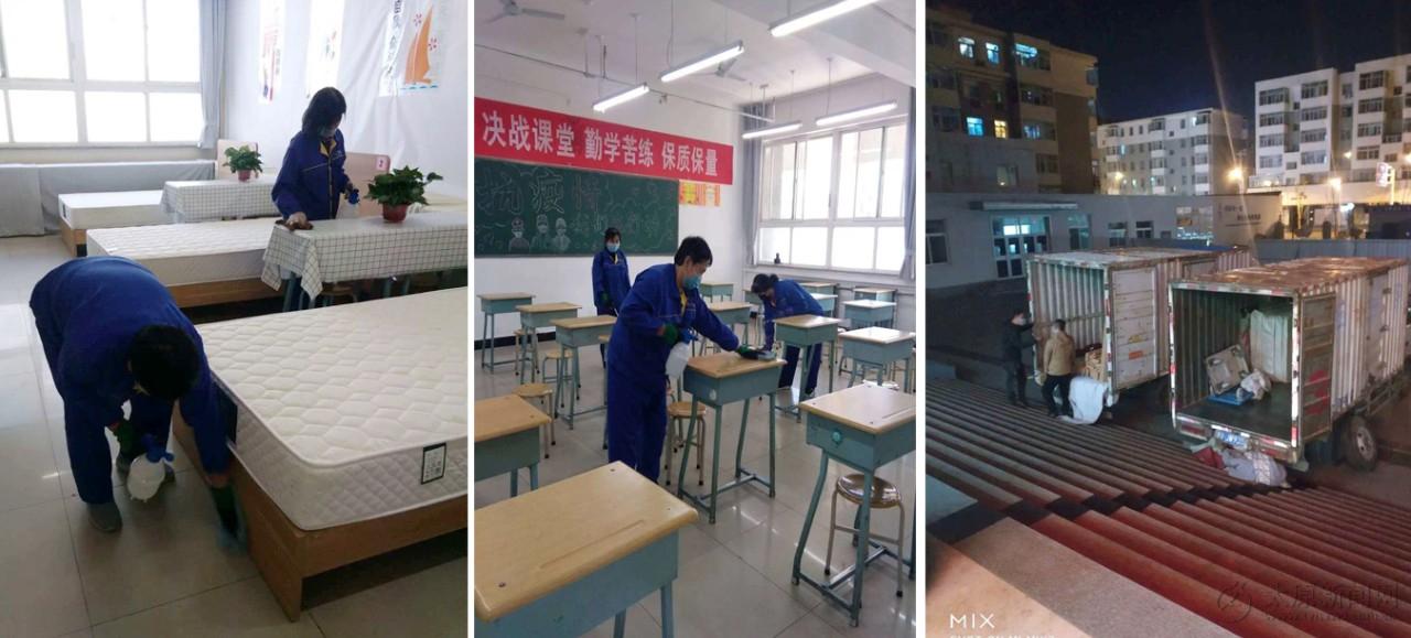 為了高三學子兩校一起努力。衛校充分發揮在衛生防疫、寄宿管理方面的優勢,為十九中提供教育教學、學生公寓、食堂超市以及衛生防疫、后勤維修等一系列軟硬件支持。十九中學校全體黨員干部集體上陣,主動承擔起衛校學生教室、公寓的物品打包整理以及清潔消毒等移交工作。