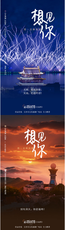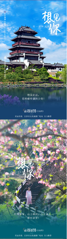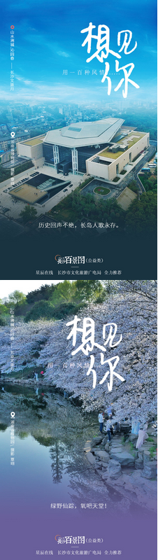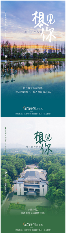 首期推出的公益類海報(bào)(第一期),包括橘子洲、巴溪洲、板倉(cāng)小鎮(zhèn)、青羊湖濕地、黑麋峰森林公園等27個(gè)市民喜歡的打卡地,讓我們走進(jìn)它,賞花、露營(yíng)、遠(yuǎn)足、攝影,享受春日美景。