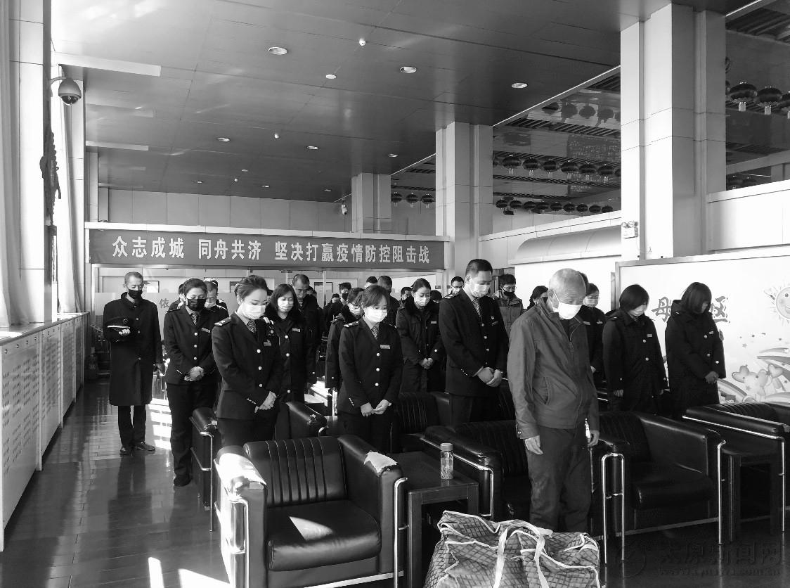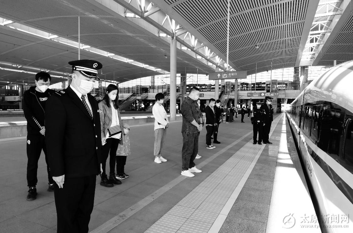 為表達(dá)對抗擊新冠肺炎疫情斗爭犧牲烈士和逝世同胞的深切哀悼,4月4日,中國鐵路太原局集團(tuán)有限公司各單位、各部門一律停止各類公共娛樂活動。上午10時(shí),該局集團(tuán)公司全體員工默哀3分鐘,管內(nèi)線路上運(yùn)行、庫內(nèi)整備的600多臺機(jī)車同時(shí)鳴響汽笛。太原站、太原南站等104個(gè)客運(yùn)車站工作人員、旅客集體默哀,寄托哀思。