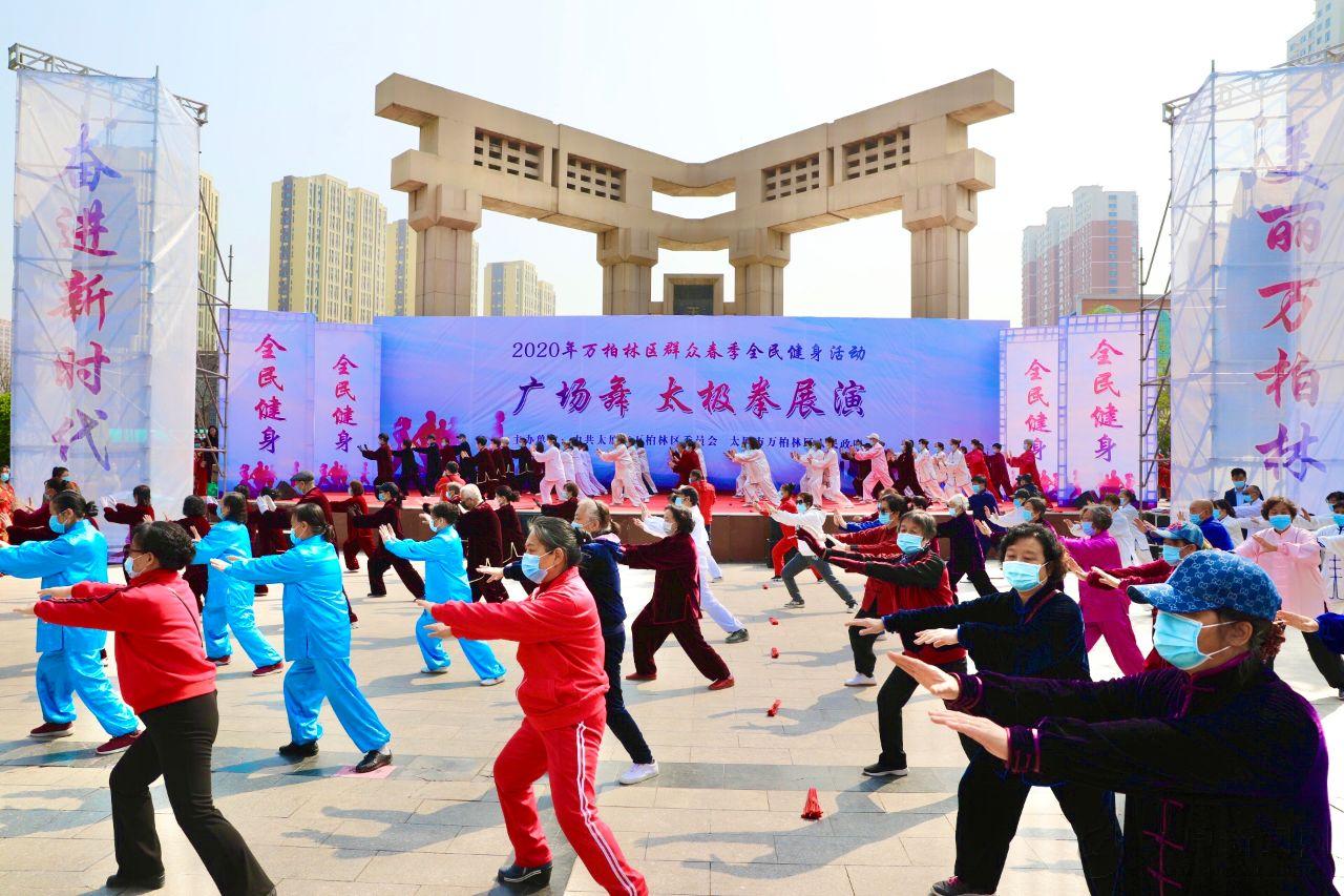 4月6日上午,2020年萬柏林區群眾春季全民健身活動廣場舞、太極拳展演在玉門河公園舉行。