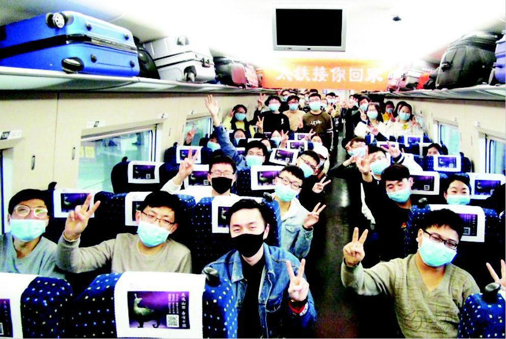 鐵路部門制定了三種換乘方案,最終與校方商定,先從湖北省咸寧市登乘G697次列車,到達太原南站后,再換乘D5378次到大同。這樣,學生的中途接續等候時間僅需一個多小時。經國鐵集團批準后,接續的兩趟高鐵動車均預留兩節車廂作為學生專用,承擔乘務任務、組織上下車任務的太原客運段、太原南站、大同站都開辟了綠色通道、安排專人引導,保障學生平安返校。