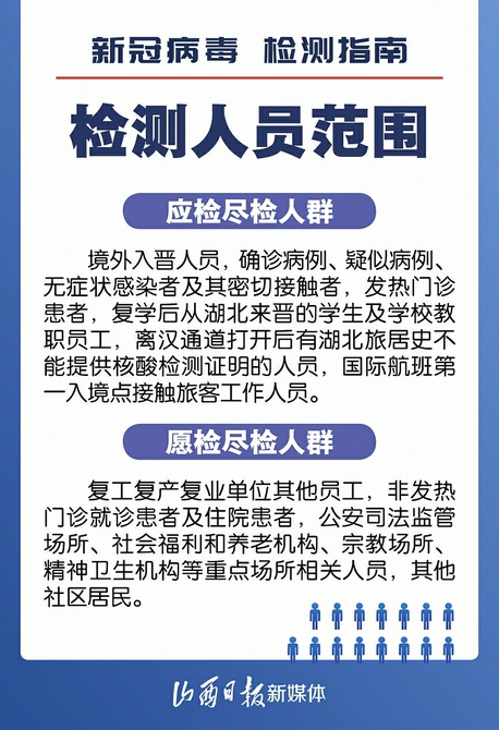4月16日,省衛健委發布了《關于向社會提供新冠病毒檢測服務的通告》,我省開展核酸檢測和血清學檢測,滿足廣大群眾多樣化的新冠病毒檢測需求,實現應檢盡檢、愿檢盡檢。檢測人員包括哪些?檢測時有哪些注意事項?看這份新冠病毒檢測指南。