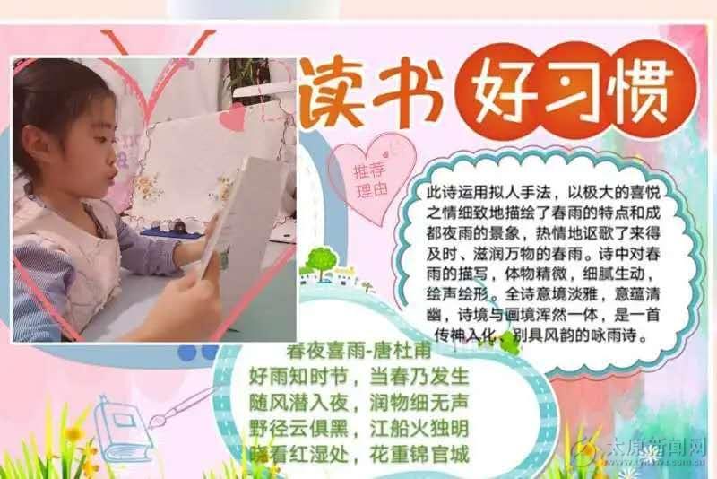 4月23日,在第二十五屆世界讀書日來臨之際,杏花嶺小學在學生中開展“閱讀啟迪智慧書香陪伴成長”云端讀書系列活動。活動包括“尋找書香最美家庭”“好書推薦”“經(jīng)典誦讀”等篇章。