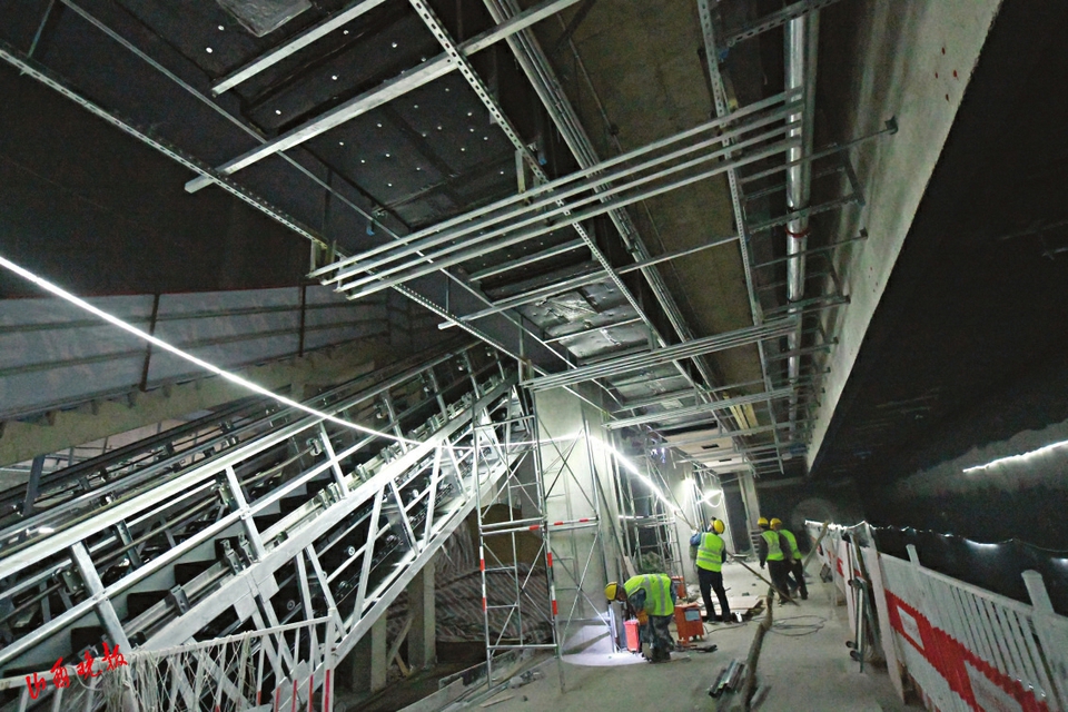 工作人員在大南門站安裝隧道內區間電纜支架。