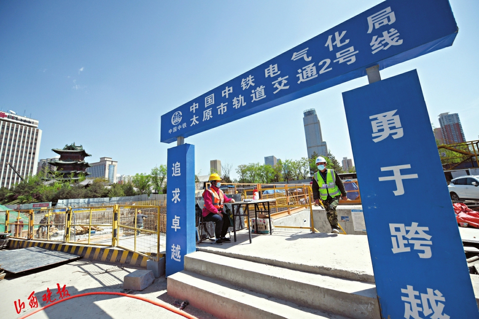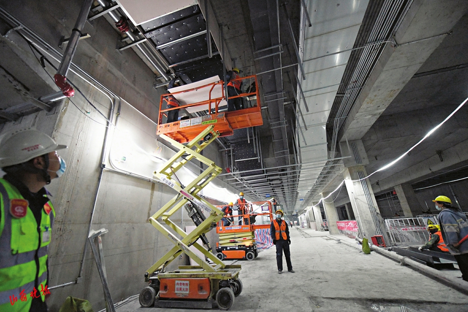 在地鐵2號線晉陽街站的隧道內,工作人員爭分奪秒焊接鋼筋。