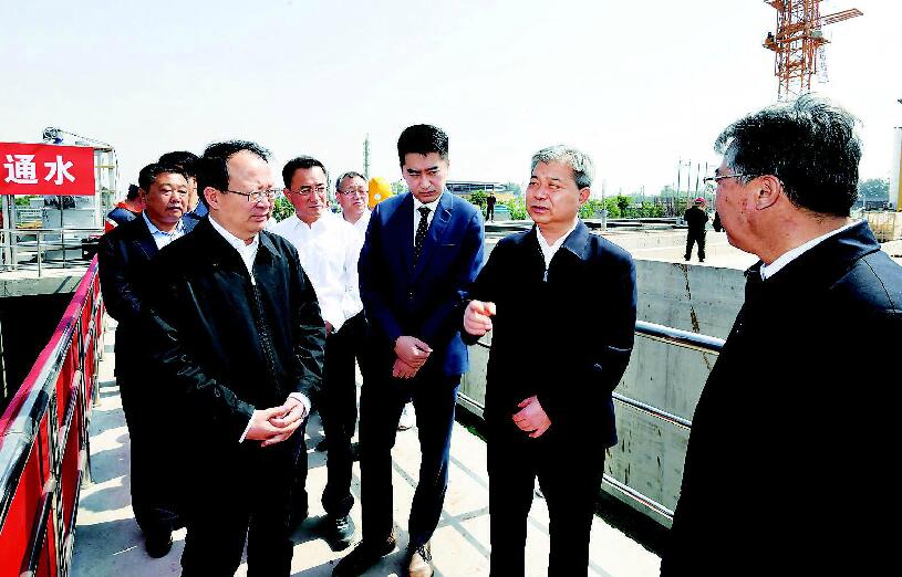 省委常委、市委書記羅清宇,省政協(xié)副主席、市委副書記、市長李曉波在汾東污水處理廠調(diào)研一期二步工程建設(shè)運(yùn)行情況。梁琛 攝