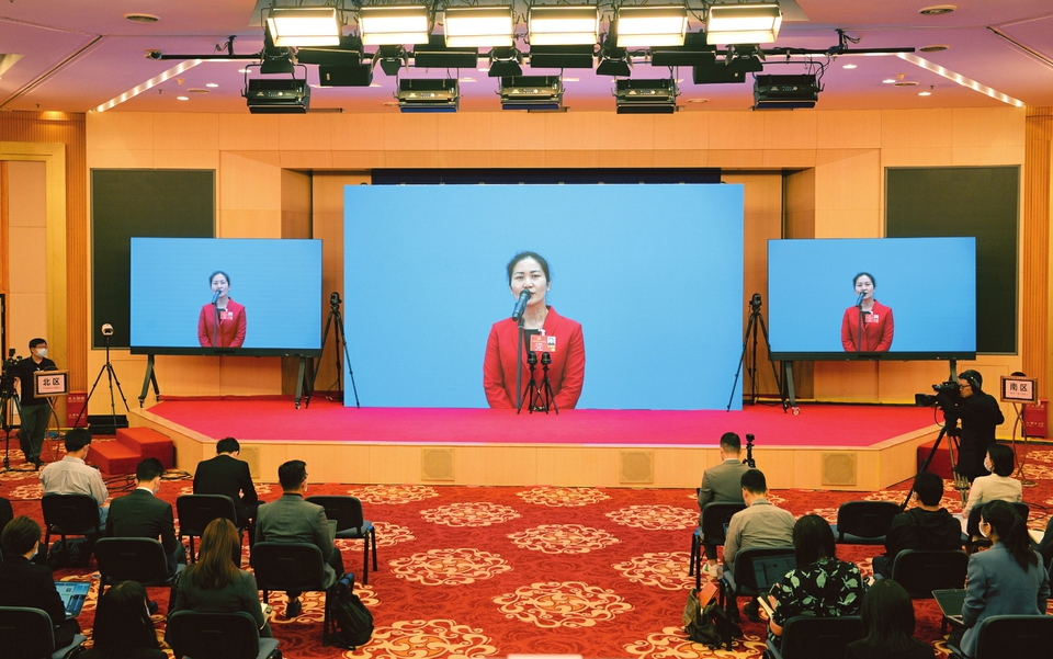 今年的“代表通道”由往年的集中采訪改為視頻方式進行。首場活動邀請6名代表,分三組接受采訪。