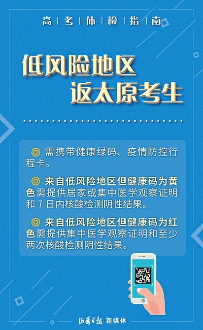2020年高考體檢工作即將開始。疫情期間,高考體檢不同于以往。近日,太原市中小學(xué)衛(wèi)生保健所對高考生發(fā)出提示。各類考生體檢需攜帶哪些證明?體檢前、體檢時(shí)有哪些注意事項(xiàng)?8張海報(bào)貼心提醒。