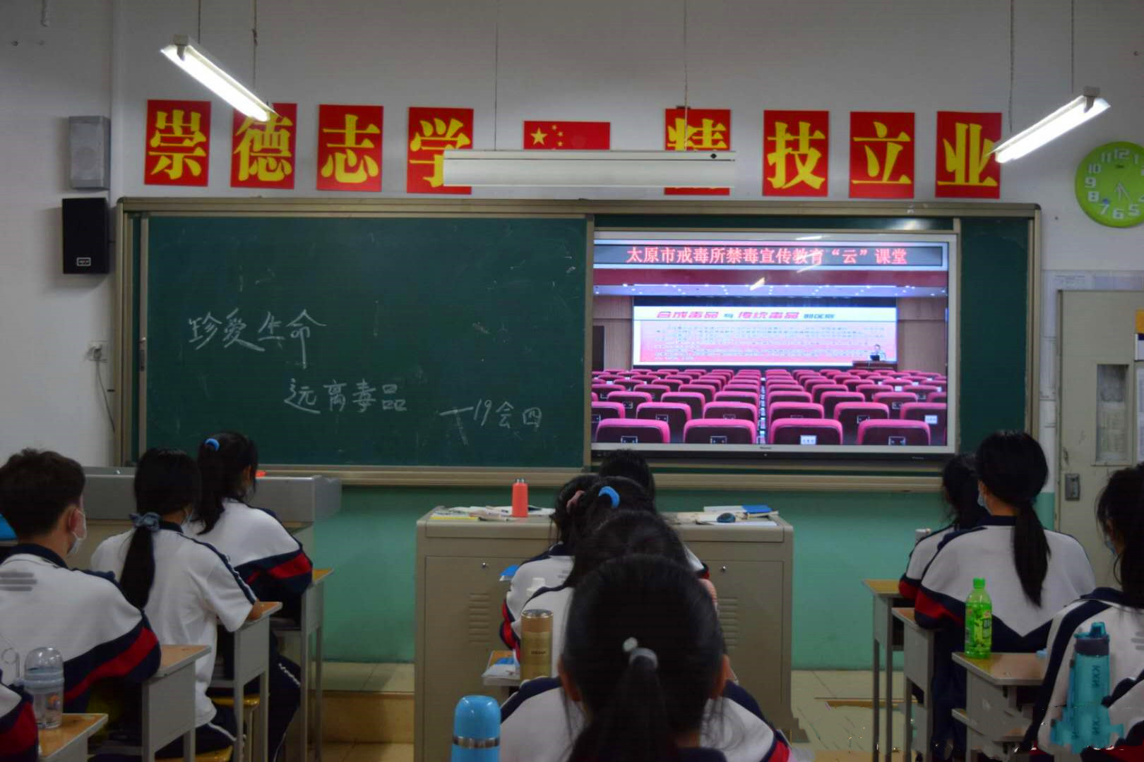 在課堂上,學校利用學生晚上自習時間,播放了戒毒所民警錄制的一堂45分鐘的禁毒課程,課程圍繞禁毒形勢、毒品分類及危害、青少年如何預防毒品進行了講解。