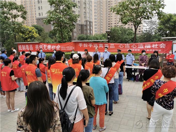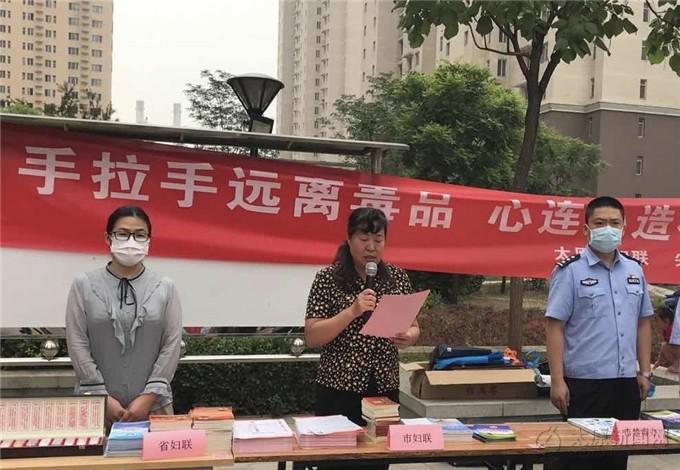 為向全社會進一步普及毒品預防知識,提高廣大人民群眾識毒、拒毒、防毒意識,進一步增強各家庭成員對毒品的認知和抵御能力。在第33個“6.26”國際禁毒日來臨之際,6月23日,太原市婦聯聯合省婦聯、市檢察院、市禁毒辦等多家單位,在我市尖草坪區龍康新苑小區共同開展了以“手拉手遠離毒品 心連心造福社會”為主題的“6.26”國際禁毒日宣傳教育活動。