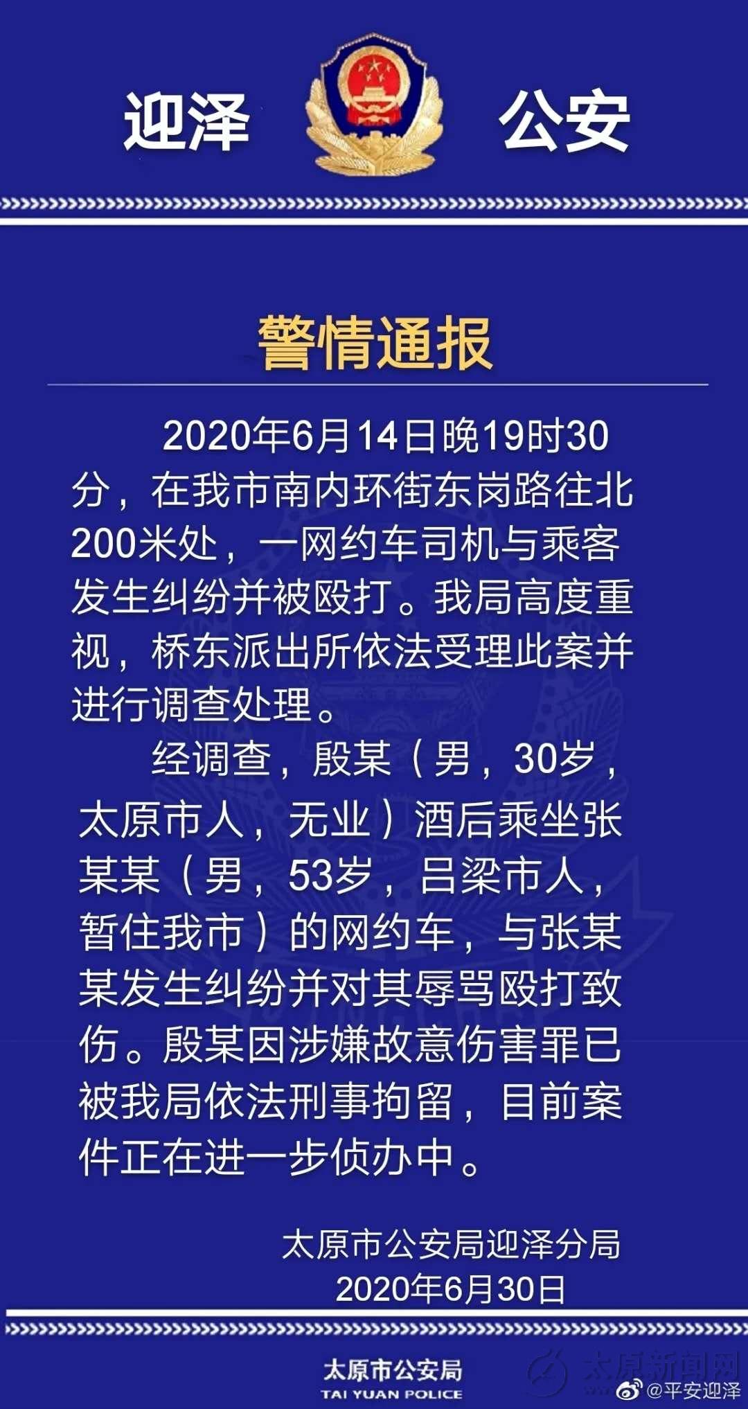 6月30日,太原市公安局迎澤分局發布了警情通報。